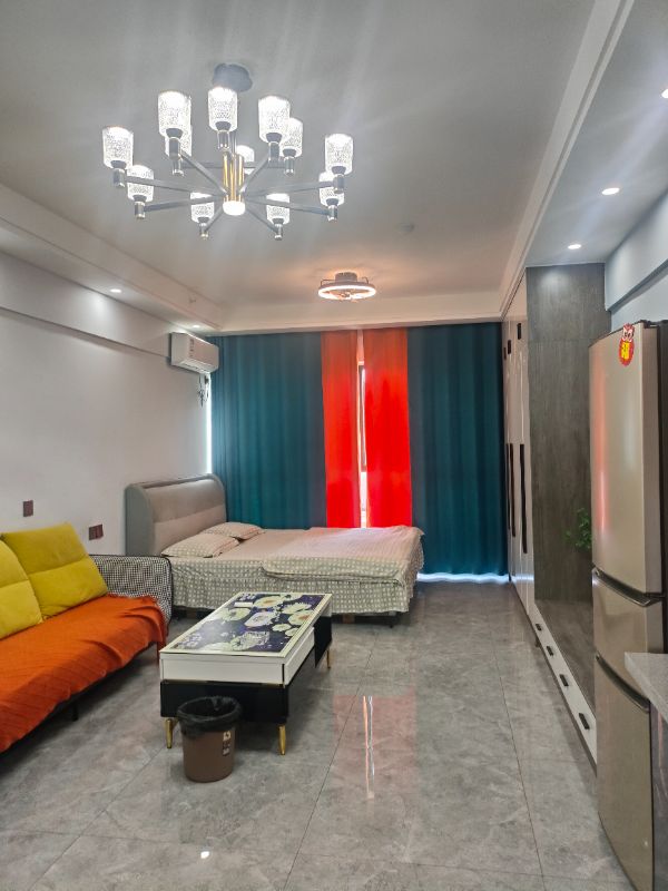 天兴大厦的这套房子要出租啦!一室一厅一厨一卫,家具家电齐全,有中央空调、冰箱、洗衣机、沙发、餐桌、床..