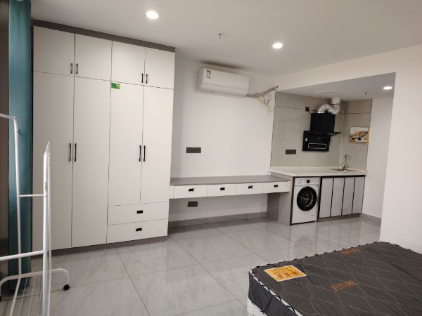 岀租单身公寓一间,40多平方,新车站附近,红星国贸广场,东临万福小学100米。9号楼3楼电梯房,精装修,厨...