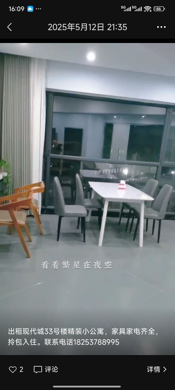 出租现代城33号楼精装公寓 [2025/11/15 16:07:00]
